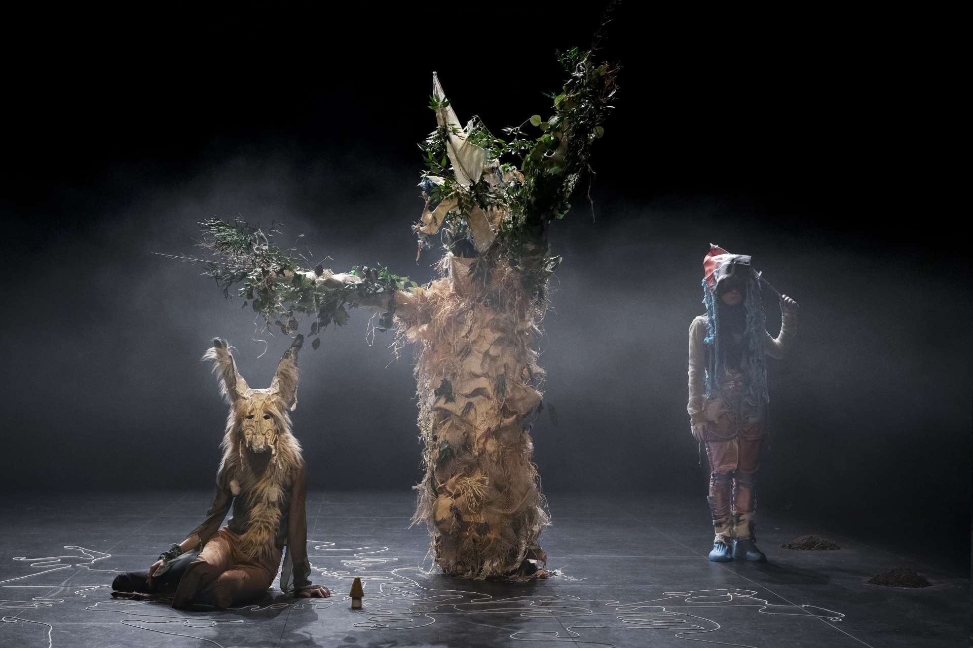 C’est quoi ? Mathieu Barché réussit le pari ambitieux de traduire la pensée de la philosophe Donna Haraway dans un spectacle jeune public. Partant du principe que nous avons besoin de nouveaux récits dont l’Homme n’est pas nécessairement le centre, les personnages de cette pièce sont un pommier, un champignon, une coyote et une zadiste. Chacun·e fuit un monde qui les menace et trouve refuge sur le territoire de la scène : une zone à défendre. Le temps d’une soirée, ils se rencontrent pour construire ensemble de nouvelles histoires.